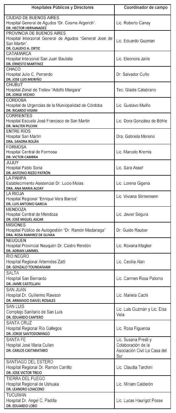 DETALLE DE HOSPITALES y COORDINACIONES PROVINCIALES