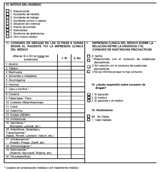 Sobre este texto se resaltaron los resultados y sus referencias con dos temas específicos: a) el análisis de la relación entre el consumo y la consulta de emergencia, donde se vislumbraron los motivos de ingreso a la guardia de las consultas vinculadas según los consumos específicos, la morbilidad asociada al consumo de sustancias psicoactivas (SPA), y los motivos de ingreso a la guardia de las consultas vinculadas con el consumo de SPA -describiendo el perfil de los consumidores-, y b) los análisis comparativos entre los estudios elaborados sobre esta especialidad por la SEDRONAR en el 2003, 2005, 2007 y 2009.