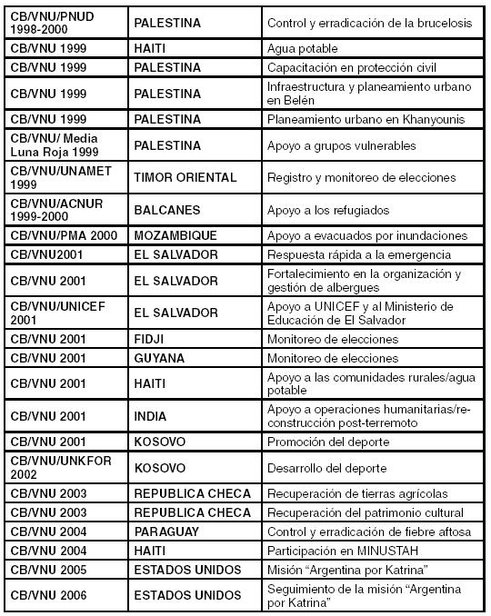 A continuación se listan las misiones desarrolladas por Cascos Blancos en el marco de acciones bilaterales.